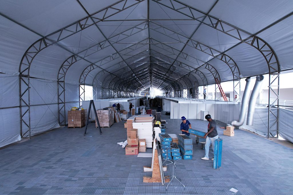 Na tarde desta quarta-feira (28), frentes de trabalho avançavam na montagem da estrutura da 12ª Bienal do Livro de Campos, que será aberta na próxima sexta-feira (30), às 18h, prosseguindo até o dia 8 de junho, com vasta programação (AQUI) no Centro de Eventos Populares Osório Peixoto (Cepop). A tenda-galpão de 2.250 m² já recebeu cobertura, piso, climatização e estandes. Os mais de 150 mil livros que serão expostos também já começaram o ocupar as prateleiras. Nesta quinta-feira (29), toda a estrutura já estará preparada.