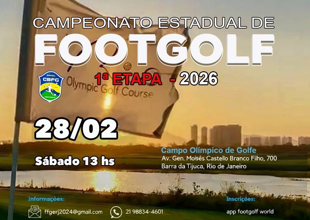 Campeonato Estadual de Footgolf do Rio de Janeiro 2026 é realizado e organizado pelas Federação Footgolf do Estado do Rio de Janeiro – FFGERJ (filiada da Confederação Brasileira de Footgolf – CBFG membro da Federação Internacional de Footgolf – FIFG) e a Machado Consulting Assessoria. O campeonato tem seis etapas nas categorias individuais, sendo o somatório de pontos do footgolfer em cinco etapas, o resultado da colocação no Campeonato Estadual de Footgolf do Rio de Janeiro 2026.  Será descartada uma etapa, das seis etapas disponível para o footgolfer. Da 1ª à 5ª etapas do campeonato, cada uma vale 100 pontos, e a 6ª etapa vale 200 pontos. A competição é disputada em 18 buracos, para Footgolf, com 2 voltas em 9 buracos, stroke play, no dia 28 de fevereiro de 2026, no Campo Olímpico de Golfe,  Rio de Janeiro – RJ, Brasil. O Torneio contará 100 pontos para a FFGERJ Tour 2026. As inscrições se encerram na data de 27/02/2026. O diretor da 1ª etapa é o Sr. Luis Machado.