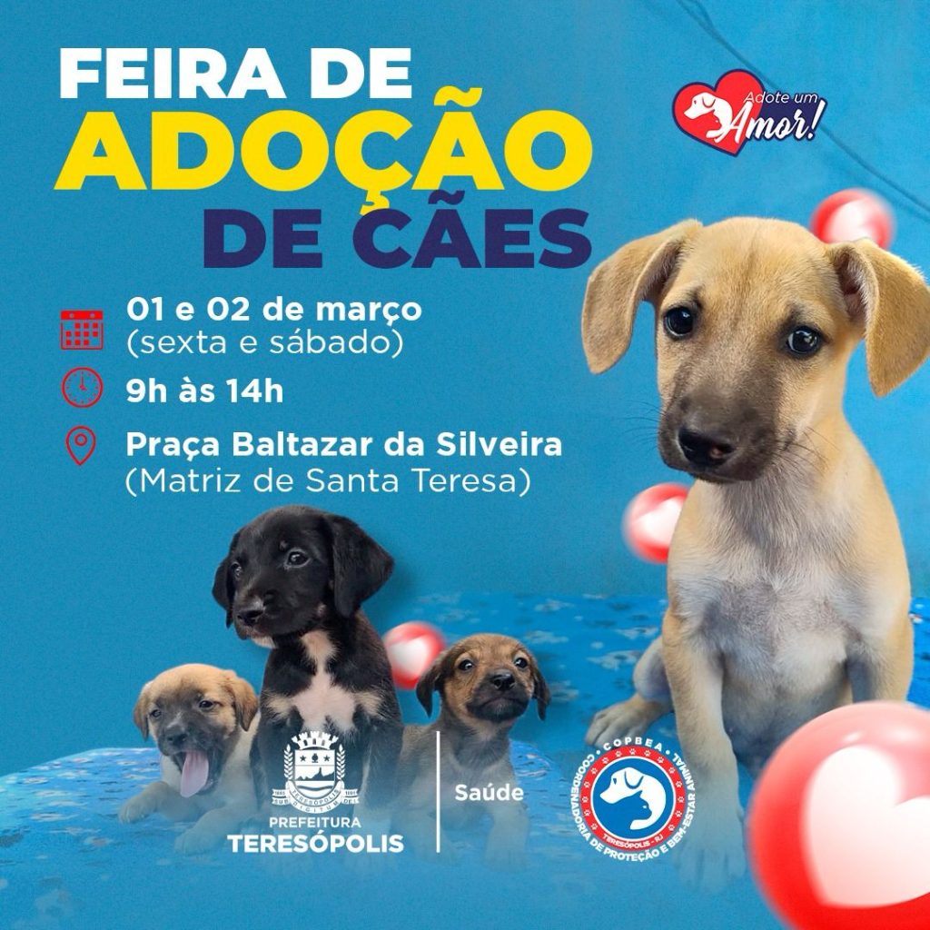‘Adote um amor’: feira de adoção de cães em Teresópolis acontece nesta sexta, 01, e no sábado, 02, na Praça Santa Teresa