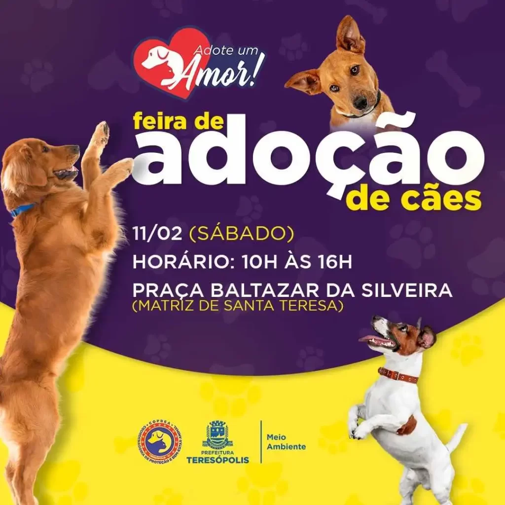 A Coordenadoria de Proteção e Bem-estar Animal (COPBEA), vinculada à Secretaria Municipal de Saúde da Prefeitura de Teresópolis, realiza neste sábado, 11/02, a Feira de Adoção ‘Adote um Amor’, das 12h às 16h, na Praça Baltazar da Silveira (da Matriz de Santa Teresa), na Várzea.