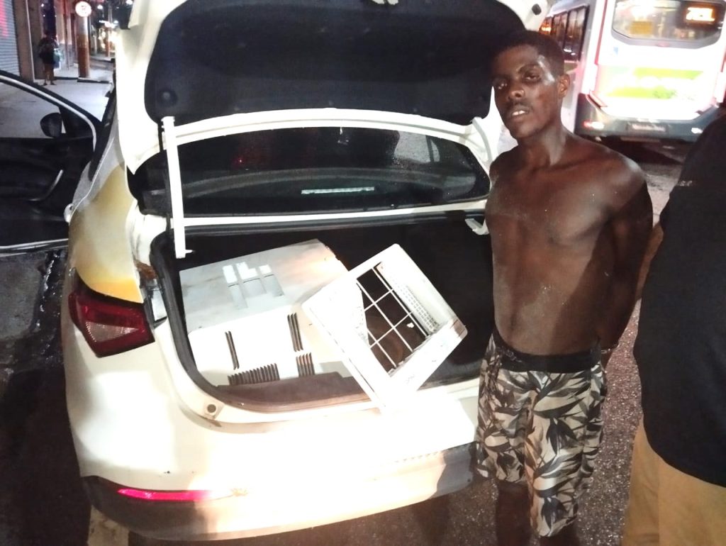 Agentes da Guarda Municipal de Belford Roxo prenderam em flagrante, no centro do município, Alexsandro de Oliveira, que carregava um aparelho de ar-condicionado furtado do Centro de Atenção Psicossocial Infantil (Capsi). Ao ser detido, ele alegou que o produto foi uma doação de um ferro-velho. O caso foi registrado na 54ª DP e Alexsandro autuado no artigo 155 (furto qualificado), cuja pena de reclusão varia de um a quatro anos.