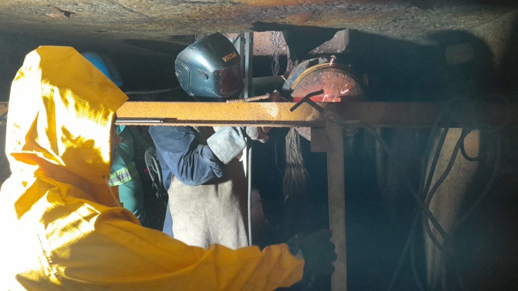 Durante o reparo, que durou cerca de cinco horas, 10 profissionais se dedicaram à soldagem de uma peça metálica, responsável pela vedação do tubo, que havia se rompido devido à forte pressão da água. O equipamento recebeu o reforço de barras de ferro para impedir que novos rompimentos aconteçam.