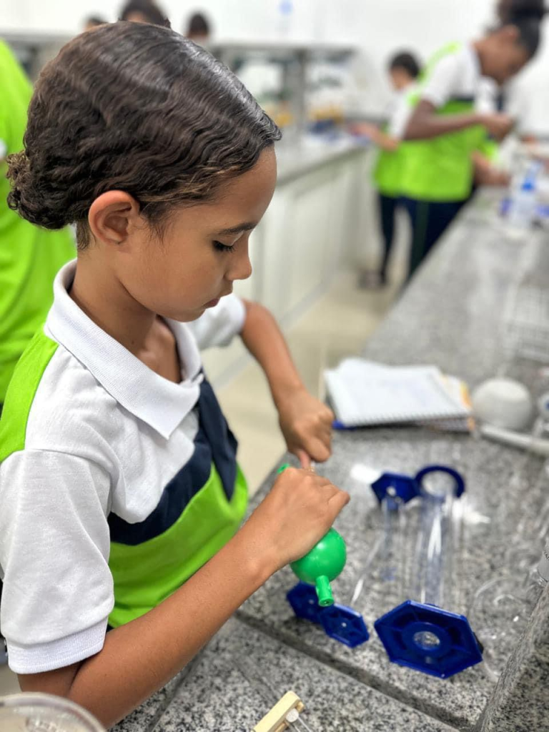 Alunos da Escola Bilíngue Municipal com orientação em Agronegócio e Turismo Rural de São Vicente participam de aulas práticas nos laboratórios e no campo