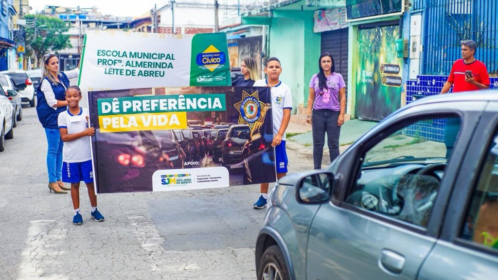 A Prefeitura de São João de Meriti, através da Secretaria Municipal de Educação, Ciência e Tecnologia, em parceria com a Ronda Escolar da Guarda Civil Municipal, realizou nesta terça-feira (25-11), uma ação de conscientização no trânsito com alunos da Escola Municipal Almerinda Leite de Abreu, em frente à unidade, localizada na Vila Rosali.