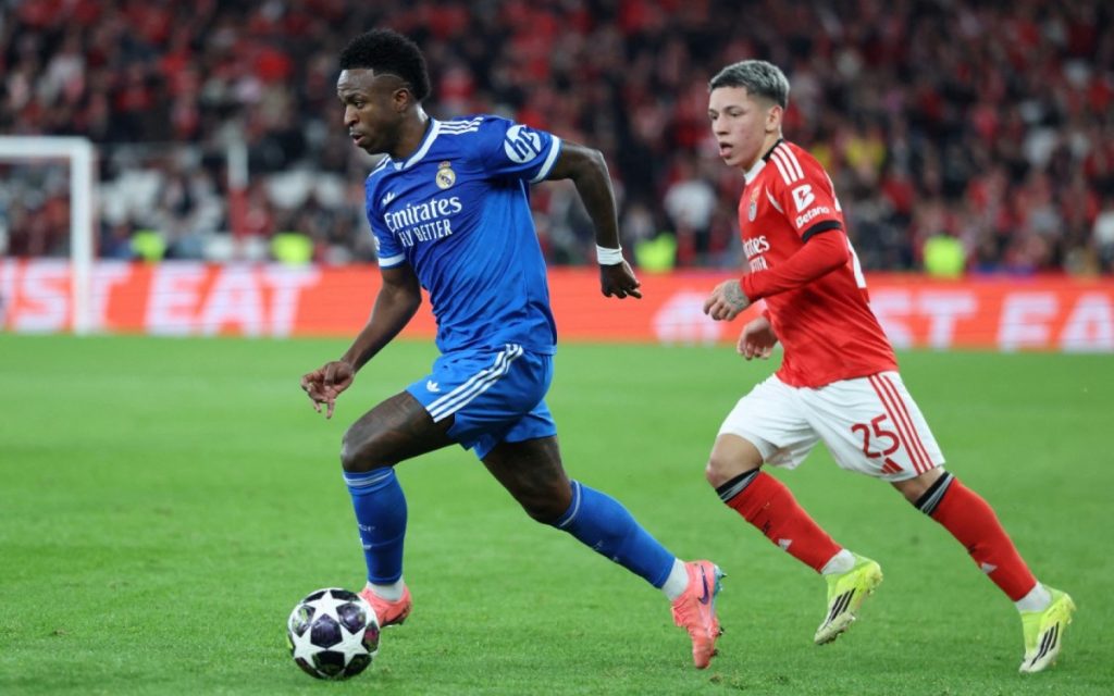 Depois de abrir o placar aos 5 minutos do segundo tempo na partida vencida por 1-0 pelo time espanhol – o jogo de ida da repescagem da Liga dos Campeões -, Vini Jr. comemorou diante dos torcedores do Benfica, o que provocou uma discussão acalorada com vários jogadores da equipe portuguesa e rendeu um cartão amarelo ao brasileiro.