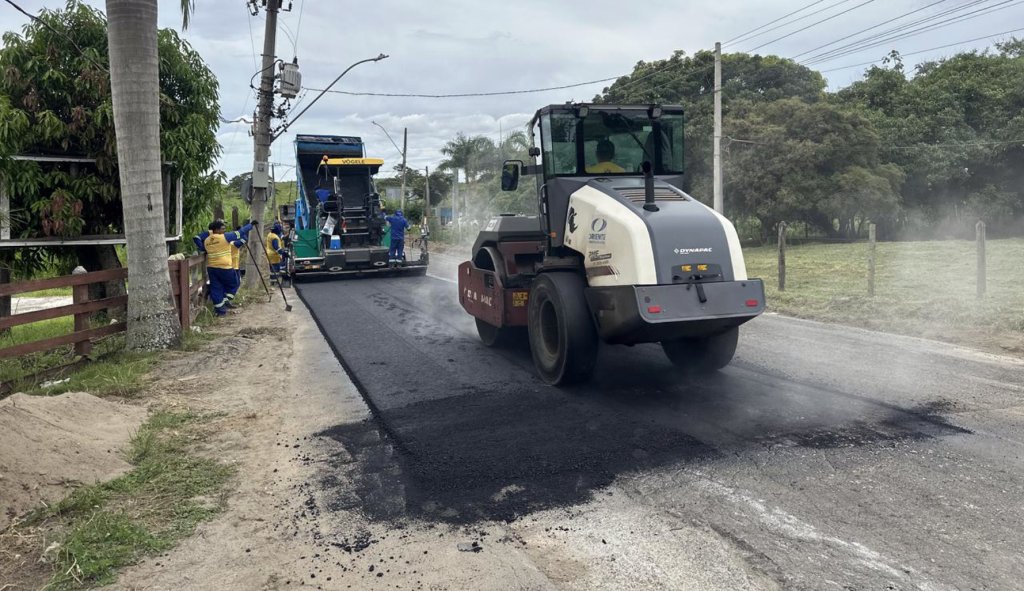 Nesta semana, equipes estão asfaltando mais de um quilômetro da rodovia, que dá acesso à Costa Verde. Obra do Governo do Estado terá investimento de cerca de R$ 7 milhões