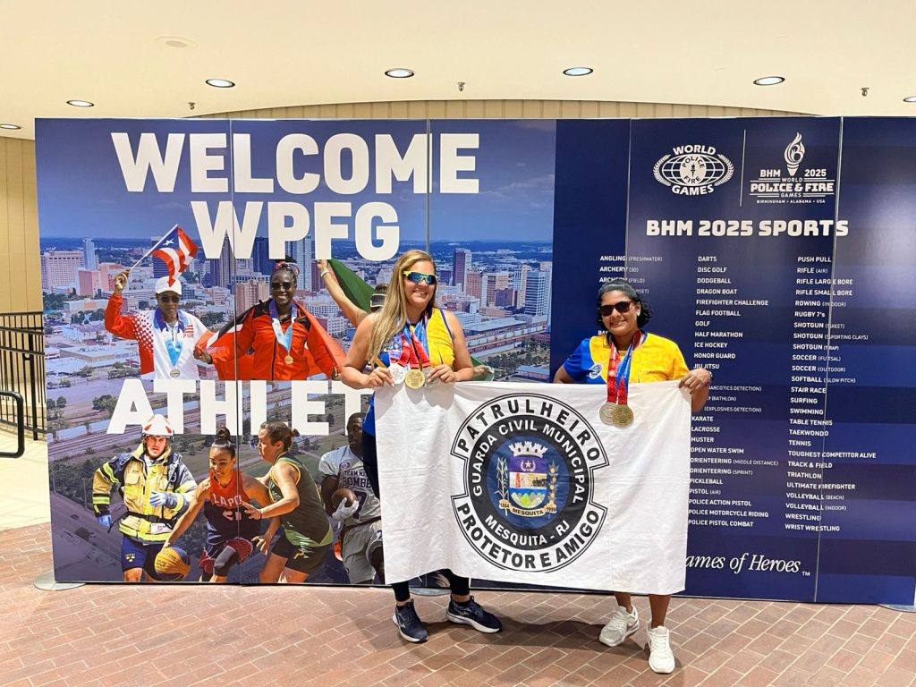 As agentes Carla Azevedo e Rosane Santos, da Guarda Civil Municipal de Mesquita, representaram o Brasil e o município com excelência no World Police and Fire Games 2025, no estado do Alabama, nos Estados Unidos. A dupla conquistou, ao todo, cinco medalhas na competição, que reúne profissionais das forças de segurança e emergência de diversos países.