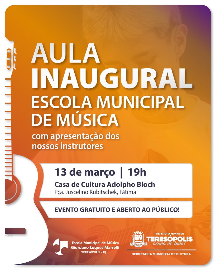 Marcada para esta quinta-feira, 13, a aula inaugural do ano letivo de 2025 da Escola Municipal de Música Giordano Loques Marrelli – Polo Teresópolis da Escola de Música Villa-Lobos. Gratuito e aberto ao público, o evento contará com a apresentação dos instrutores da unidade de ensino musical, que é vinculada à Secretaria Municipal de Cultura.