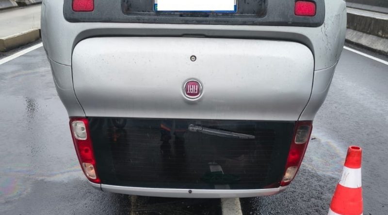 Um carro capotou na altura da Estação BRT Ventura, na altura de Jacarepaguá, Zona Sudoeste, e deixa uma faixa da