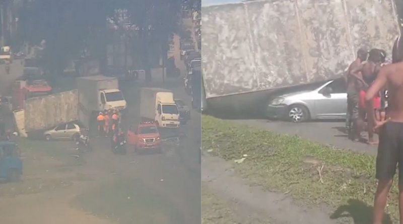 Um caminhão tombou em cima de um carro, na Avenida Brasil, pista sentido Santa Cruz, entre Vila Kennedy e Santíssimo,