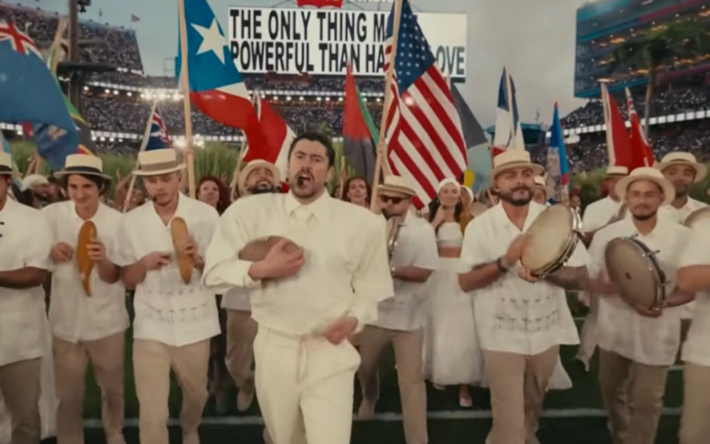 Por fim, o cantor emocionou ainda mais o público. “Deus abençoe a América”, disse o rapper, ao mencionar todos os países que integram o continente americano, enquanto bandeiras das nações eram erguidas. A frase é comumente usada por estadunidenses para referir-se apenas à própria nação, ressaltando o patriotismo. Ao fundo, o telão exibia a mensagem: “A única coisa mais poderosa que o ódio é o amor”.