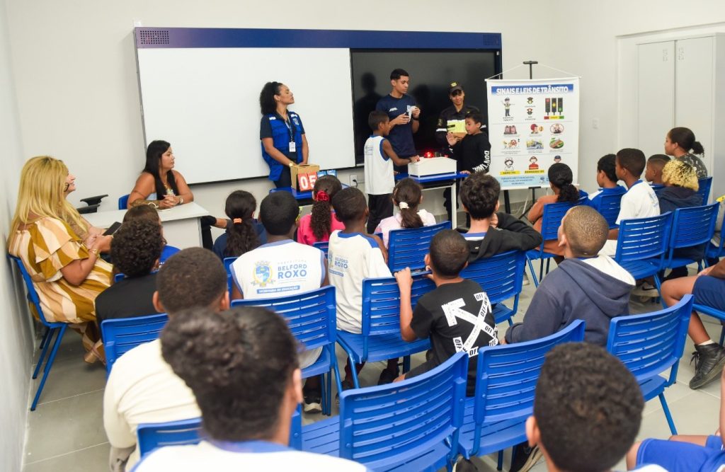 Belford Roxo: Alunos da Maria das Dores Fujii da Silva recebem primeiro dia do ‘Projeto Educação Para o Trânsito’ da Secretaria de Transporte