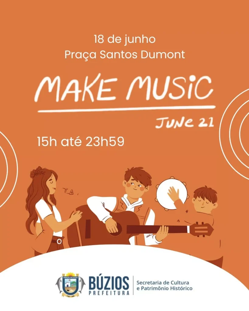 Nesta quarta- feira (18), Búzios se une a centenas de cidades ao redor do mundo para celebrar o Make Music Day, um dos maiores movimentos globais dedicados à música ao vivo. A edição 2025 será realizada na Praça Santos Dumont, no Centro, com uma programação gratuita das 15h às 23h59.