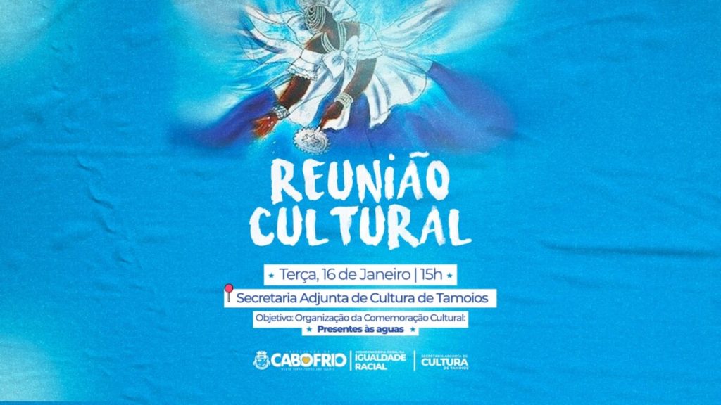 A Prefeitura de Cabo Frio, por meio da Coordenadoria Geral de Igualdade Racial, em parceria com a Secretaria de Cultura, realizará uma reunião cultural na terça-feira (16), às 15h, na sede da Secretaria Adjunta de Cultura em Tamoios, situada no Polo Cultural, no bairro Santo Antônio. O objetivo do encontro é organizar o evento em celebração pelo Dia de Iemanjá, em 2 de fevereiro.