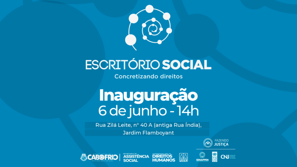 Cabo Frio está na rota para inaugurar a 62ª (sexagésima segunda) unidade do Escritório Social do país, e a 5ª (quinta) do Estado do Rio. A iniciativa é do Poder Judiciário, por meio do Conselho Nacional de Justiça (CNJ) em parceria com a Prefeitura Municipal e o Tribunal de Justiça do Estado Rio de Janeiro (TJRJ), e tem por objetivo o atendimento qualificado e a ressocialização de pessoas saídas do sistema prisional. A inauguração acontece na quinta (06), às 14h, na Rua Zilá Leite, n° 40 A (antiga Rua Índia), no bairro Jardim Flamboyant.