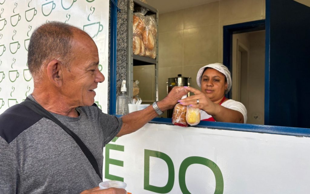 Diariamente, 250 cafés da manhã são servidos pelo valor simbólico de R$ 0,50. O kit é composto por café ou pingado, pão com manteiga e uma fruta como maçã, banana ou laranja, todos embalados em sacola plástica, garantindo praticidade e transporte seguro.