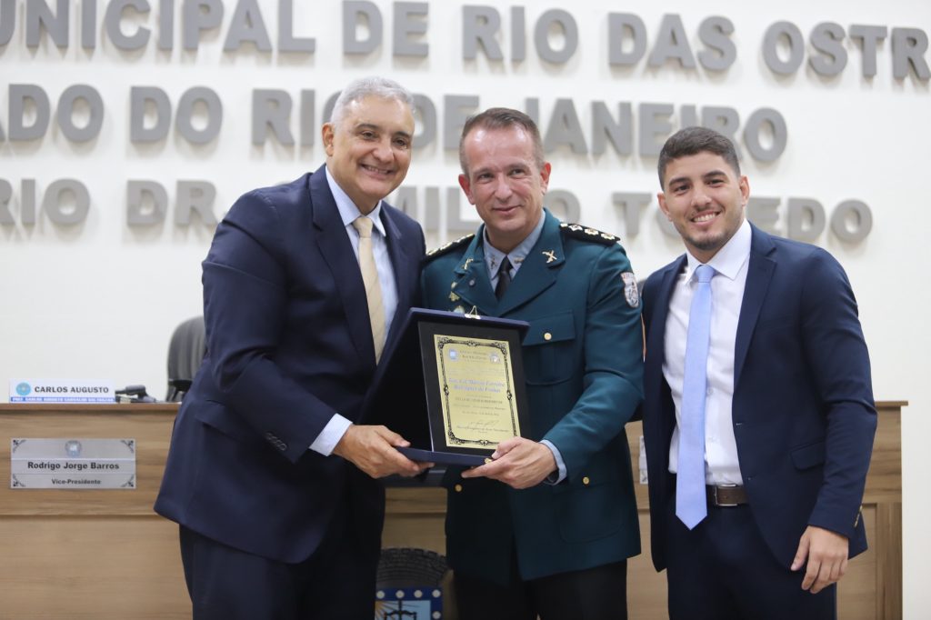 A solenidade reuniu figuras de destaque da política estadual, da segurança pública, da saúde e do empresariado do Município, entre elas a empresária, Jeannie Mayr Reis de Oliveira, o tenente-coronel Márcio Ferreira Rodrigues de Freitas, o médico e secretário de Saúde de Macaé, Lucas Dias Rodrigues e a presidente da Câmara de Dirigentes Lojistas (CDL) de Rio das Ostras, Patrícia Valverde, todos homenageados com títulos e honrarias pela contribuição ao desenvolvimento do Município e da Região.