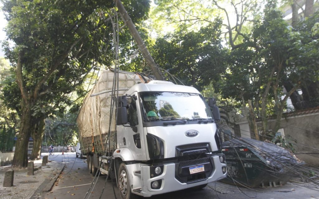 Um caminhão de grande porte colidiu com um poste na madrugada desta quarta-feira (1º), na Rua General Tasso Fragoso, na Lagoa, Zona Sul da cidade. Devido ao impacto, a distribuição de energia elétrica da região foi afetada.