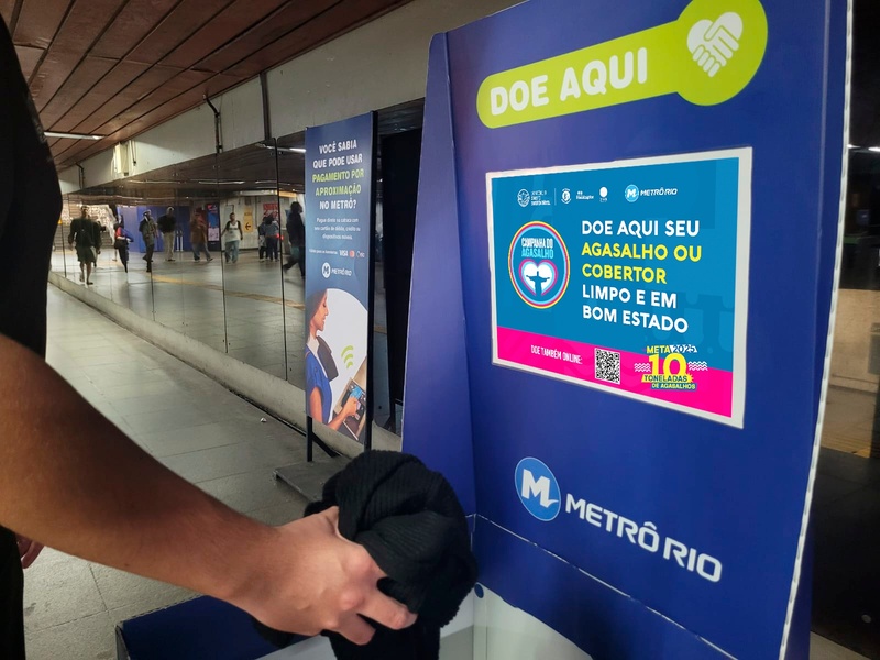 No MetrôRio, as estações Carioca, Jardim Oceânico e Del Castilho recebem cobertores e agasalhos até agosto. Donativos são destinados a pessoas em situação de vulnerabilidade social