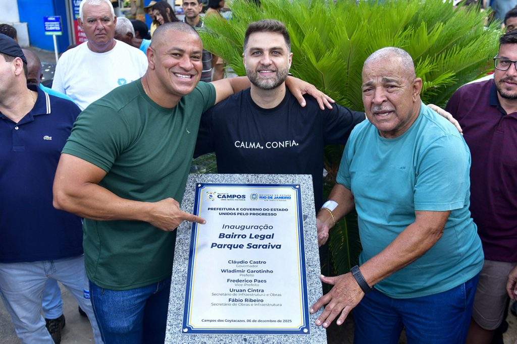A Prefeitura entregou, neste sábado (6), a conclusão das obras de reurbanização do Parque Saraiva, desenvolvidas por meio do programa municipal Bairro Legal. O prefeito Wladimir Garotinho, acompanhado de diversas autoridades políticas, destacou a importância da obra iniciada em 2016, no governo de sua mãe, a então prefeita Rosinha Garotinho, paralisada na administração seguinte e retomada e finalizada pela gestão atual em parceria com o governo do estado.