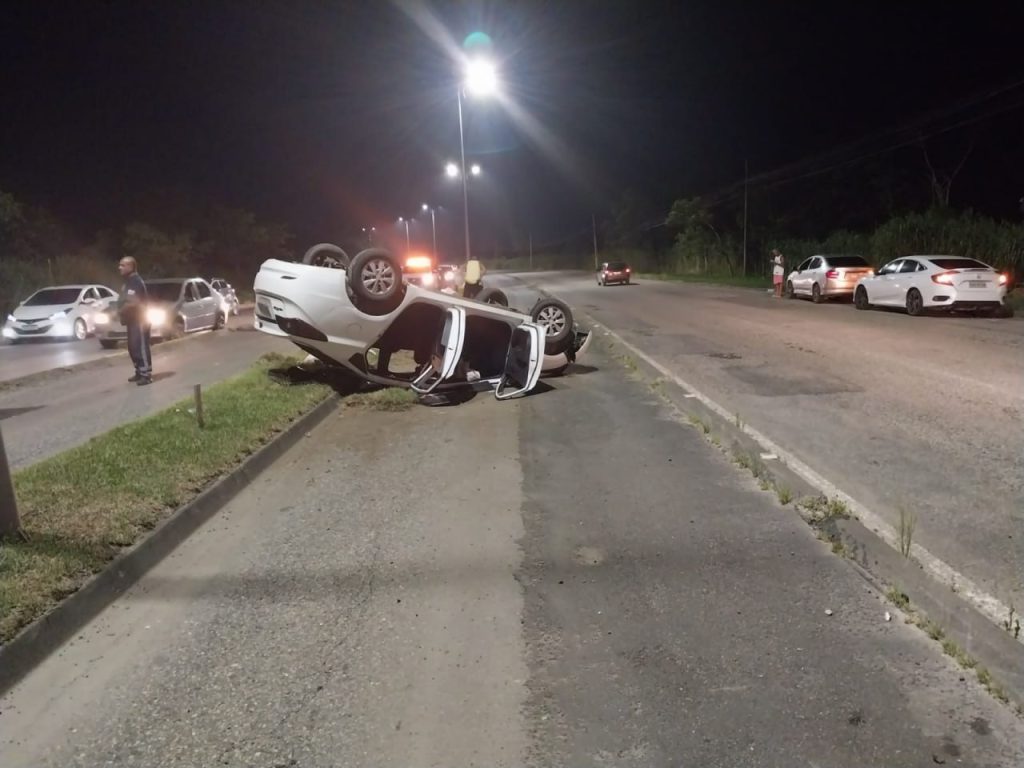 Um carro capotou na Avenida Dom João VI, em Guaratiba, Zona Oeste do Rio neste domingo (22). O acidente ocorreu entre o BRT Mato Alto e Magarça, no sentido Santa Cruz, e deixou ao menos seis vítimas.