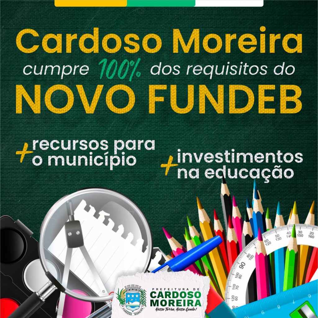 Cardoso Moreira é um dos poucos municípios do Estado do Rio de Janeiro a atender todos os requisitos para aumentar o repasse de recursos do Novo Fundeb (Lei 14.113, de 2020). Em toda região Norte Fluminense, apenas Cardoso Moreira e São Fidélis cumpriram todas as exigências. A cidade terá um considerável aumento no repasse voltado à rede pública de educação básica. Com isso, teremos condições para promover mais melhorias na educação pública municipal.