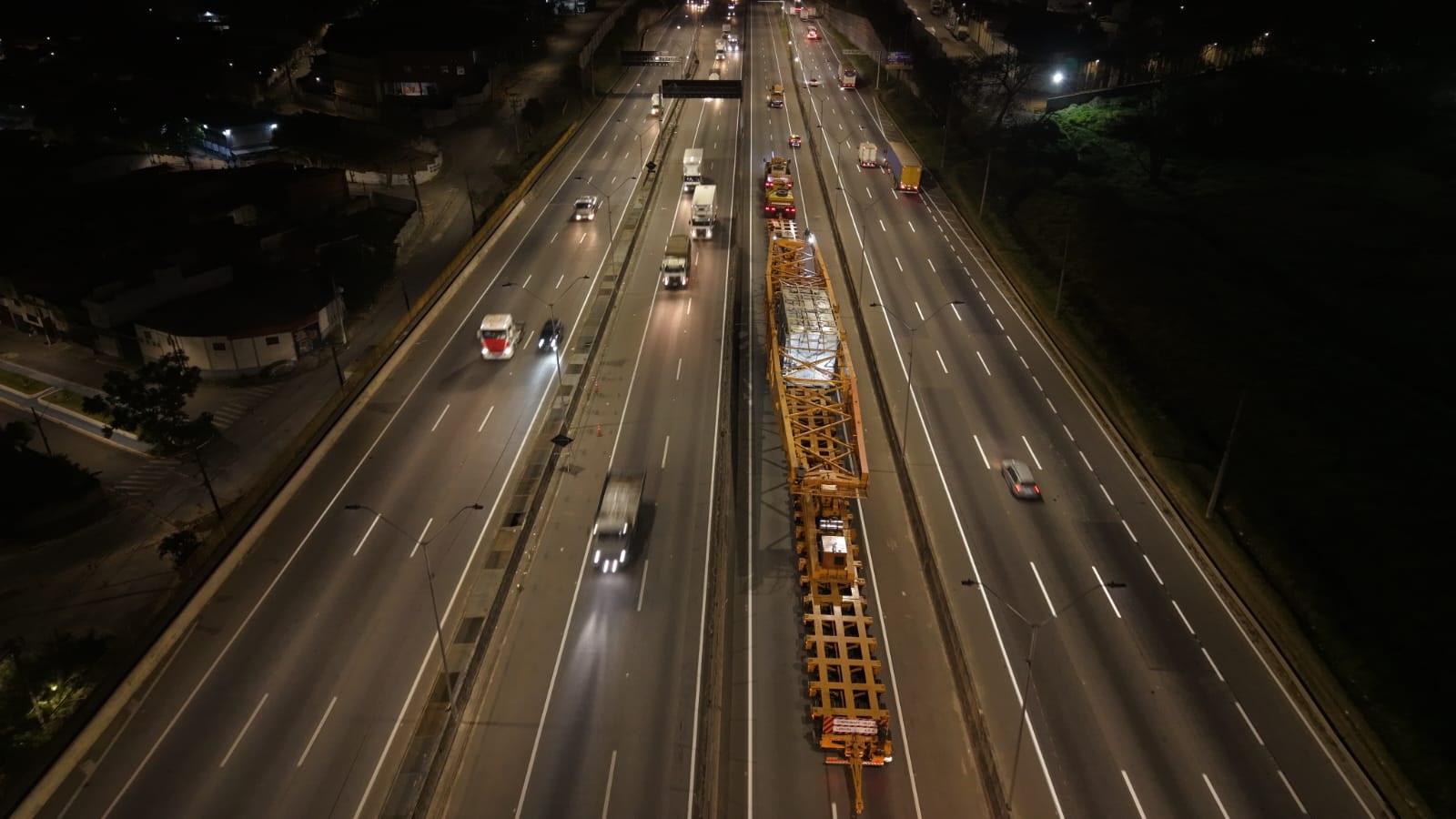 Na sexta-feira (08/08), a carga seguirá até o km 154, em São José dos Campos, onde permanecerá até a próxima etapa de deslocamento, programada para a segunda-feira, dia 12 de agosto (11/08/2025). Nesta segunda etapa, o conjunto seguirá até o km 136 da Via Dutra.