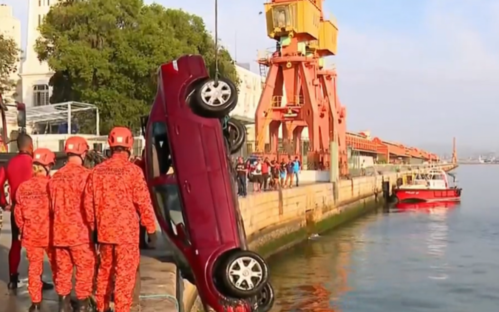 Carro cai na Baía de Guanabara; bombeiros fazem buscas por motorista