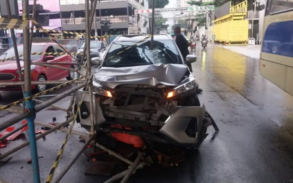 Carro colide com estrutura de andaime na Cidade Nova