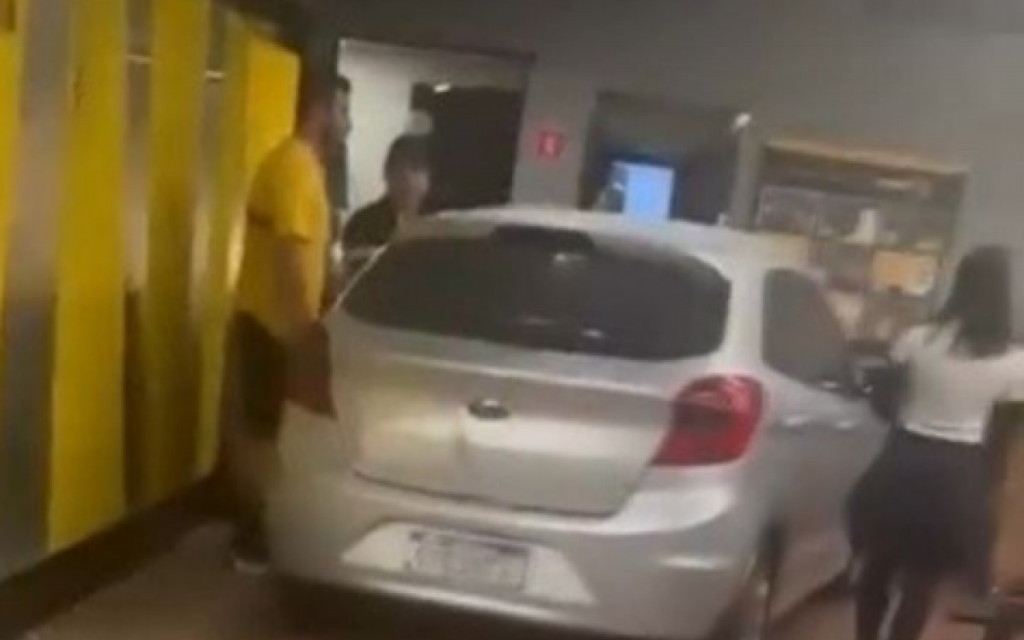 Um carro invadiu a recepção de uma academia, na noite desta segunda-feira (29), na Estrada Coronel Pedro Correa, em Jacarepaguá, na Zona Oeste, provocando pânico e correria.