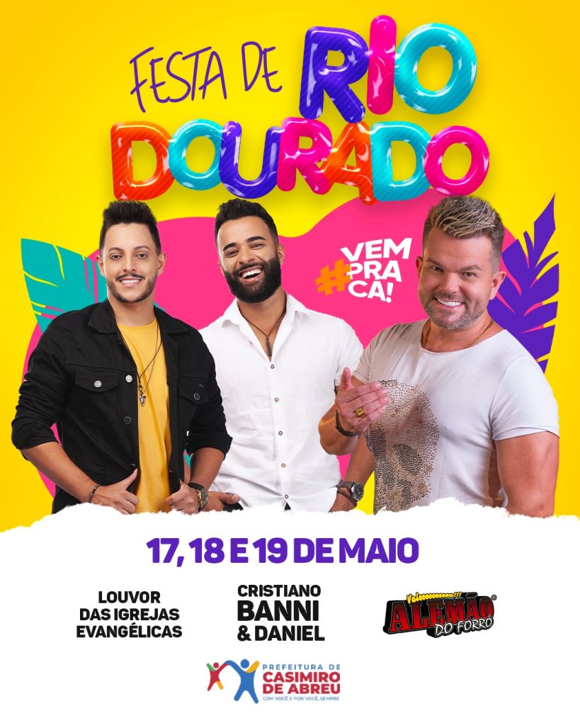 A Prefeitura de Casimiro de Abreu, por meio da Secretaria de Turismo e Eventos, preparou uma programação especial para a Festa de Rio Dourado, que acontece nos dias 17, 18 e 19 de maio.