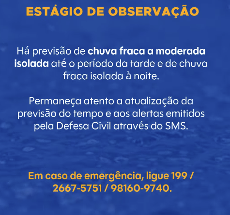 Read MoreDiante da previsão de fortes chuvas que podem atingir Nova Iguaçu entre o início da noite desta segunda-feira (19) e