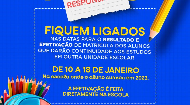 Read MorePais e responsáveis têm, a partir desta quarta-feira (10/01), para efetivar a matrícula de alunos nas escolas da rede municipal