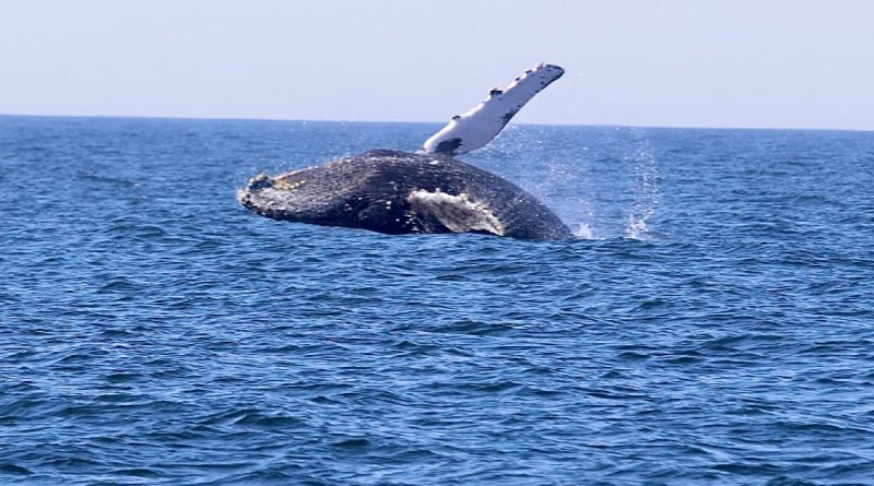 Read Morem grupo de passageiros que participou, na manhã desta quinta-feira (20), do passeio de observação de baleias na costa de
