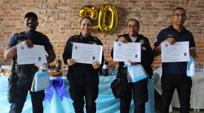 Quatro agentes da Guarda Civil Municipal de Quatis receberam uma homenagem da prefeitura após completarem 20 anos de serviços prestados