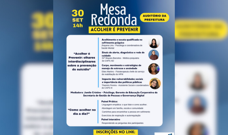 Read MoreEvento será realizado nesta terça-feira, 30 de setembro, às 14h, no auditório da Prefeitura Para fechar o Setembro Amarelo, a