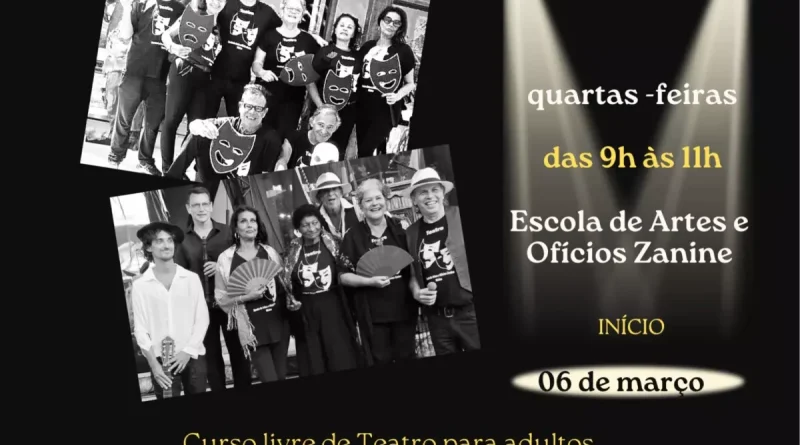 Búzios: Curso livre de teatro gratuito para adultos na Escola de Artes e Ofícios Zanine