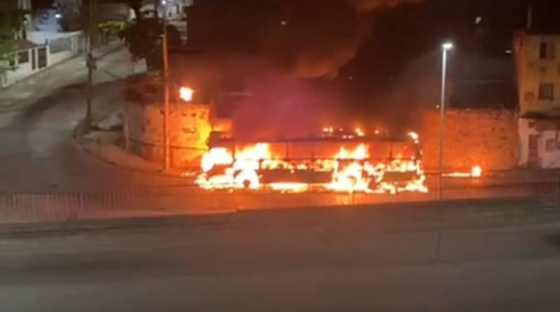 Um ônibus foi incendiado por criminosos, na noite desta quarta-feira (3), no bairro da Penha, na Zona Norte do