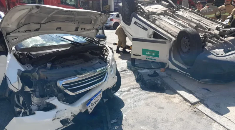 Duas pessoas ficam feridas após carro da Light capotar em batida com outro veículo na Ilha do Governador
