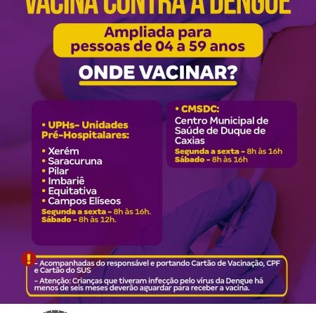 Read MoreA Prefeitura de Duque de Caxias, através da Secretaria Municipal de Saúde, anuncia a ampliação da faixa etária da campanha