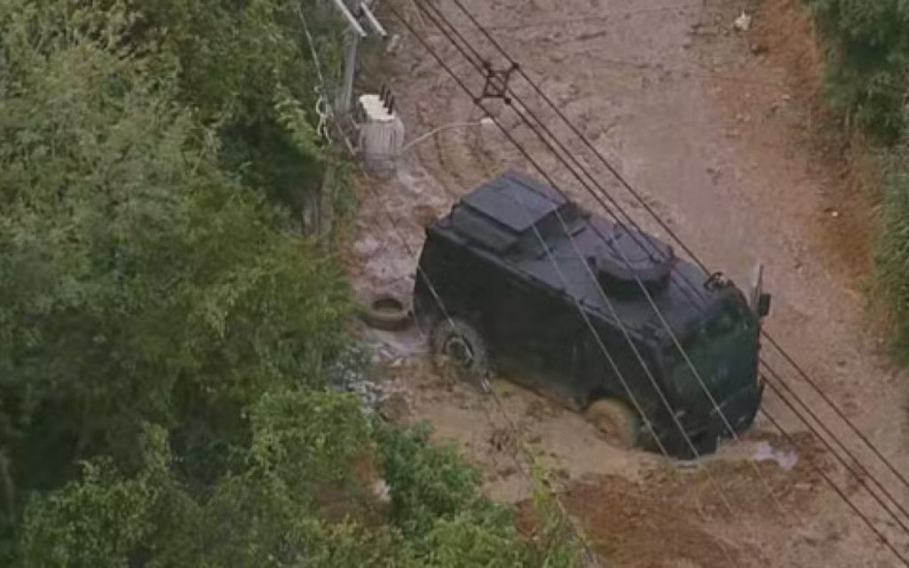 Um carro blindado da Polícia Militar, conhecido como “Caveirão”, ficou atolado na lama durante uma operação nesta segunda-feira, 20, no Complexo do Castelar, em Belford Roxo, na Baixada Fluminense. De acordo com a PM, um reboque do Comando de Operações Especiais (COE) foi acionado para retirar o veículo do local.