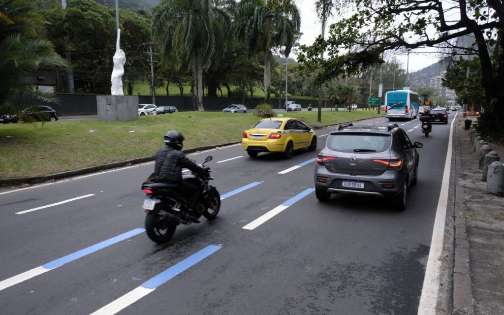Assim como a faixa que já funciona na Autoestrada Lagoa-Barra, o percurso é sinalizado com faixas azuis e foi escolhido pela Prefeitura do Rio devido ao elevado número de acidentes da via.