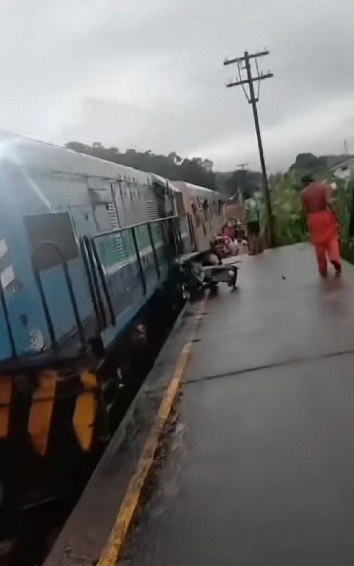Imagens que circulam nas redes sociais mostram que parte do carro ficou prensa entre o trem e a plataforma de embarque dos passageiros.