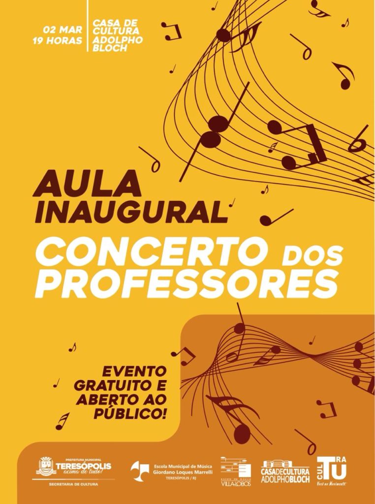 Marcado para o dia 2 de março, o concerto de abertura do ano letivo de 2026 da Escola Municipal de Música Giordano Loques Marrelli – Polo da Escola de Música Villa-Lobos em Teresópolis.