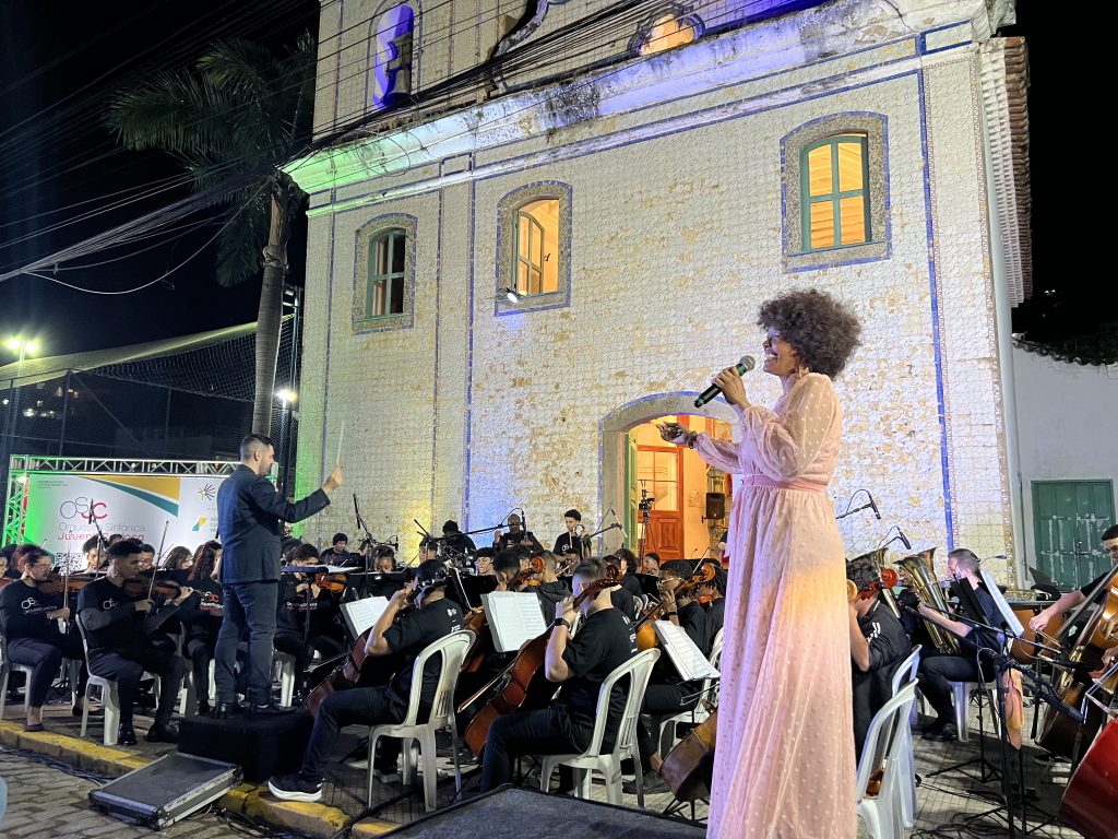 Centenas de moradores marcaram presença na apresentação do concerto ‘Chovendo na Roseira – Tom Jobim 30 anos de saudade’, apresentado pela Orquestra Sinfônica Juvenil Carioca e o Coro Juvenil do Rio de Janeiro, no centro de Mangaratiba, na noite desta quarta-feira (05). O espetáculo ainda contou com as participações especiais da atriz e cantora Isabel Fillardis, do gaitista José Staneck e do maestro Carlos Sarria.