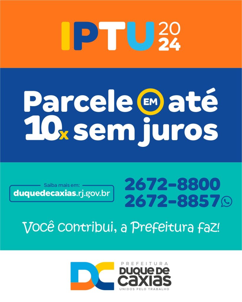 A Prefeitura de Duque de Caxias, através da Secretaria Municipal de Fazenda, informa que o contribuinte que perdeu o prazo de 19 de fevereiro para pagar o Imposto Predial Territorial Urbano (IPTU) referente ao ano de 2024 em cota única com descontos tem agora a oportunidade de quitar o imposto em até dez parcelas, com valores iguais e em meses consecutivos, com a primeira parcela de vencimento a ser paga em 20 de fevereiro, mas sem direito a descontos. As parcelas devem ter valor mínimo de R$ 90,00.