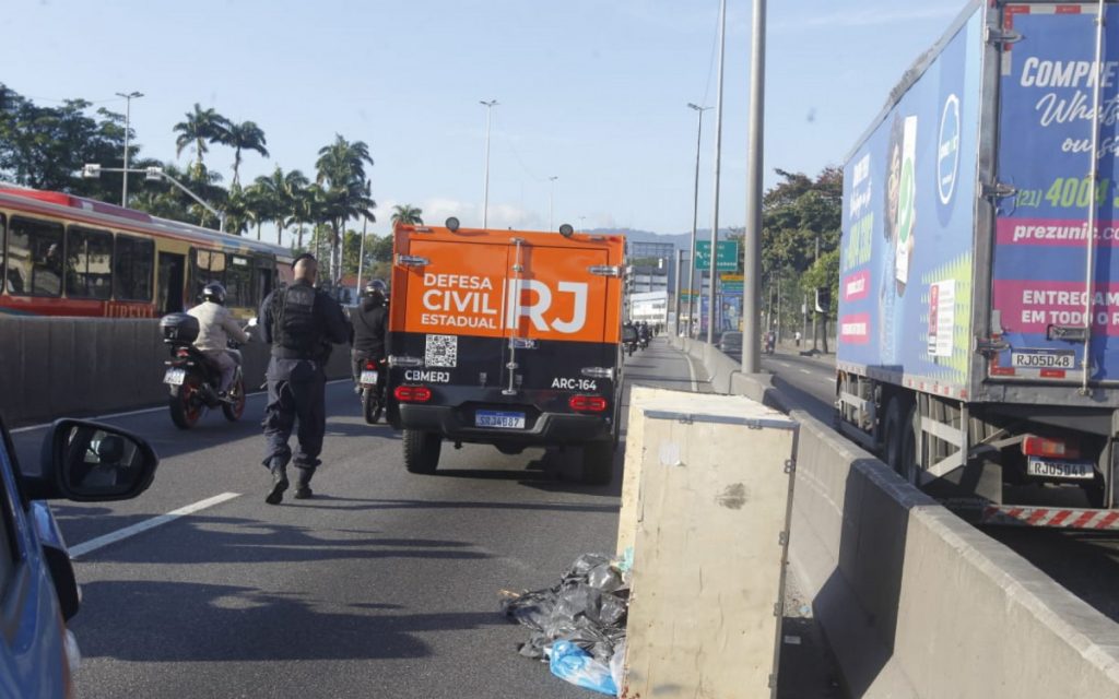 Segundo o Centro de Operações Rio, uma faixa da pista central da avenida, no sentido Centro, está interditada para o trabalho dos agentes. O trânsito está com retenções no trecho.