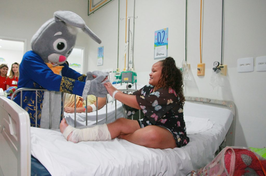 Crianças do Hospital Geral de Nova Iguaçu recebem a visita do coelho da Páscoa