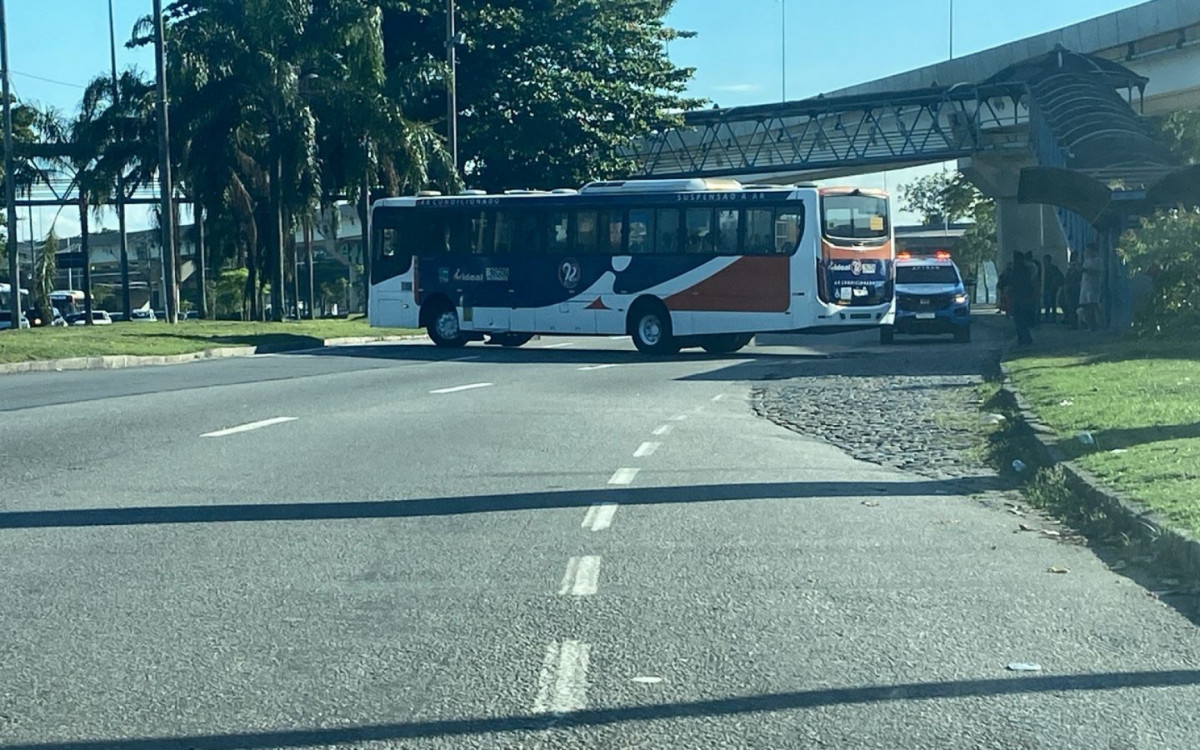 Criminosos atravessam ônibus na Estrada do Galeão; acesso ao aeroporto chegou a ser fechado