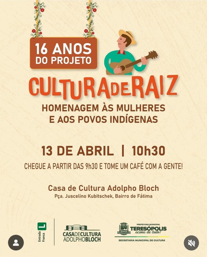 Cultura de Raiz: Edição especial neste domingo, 13 de abril, comemora os 16 anos do projeto na Casa de Cultura de Teresópolis